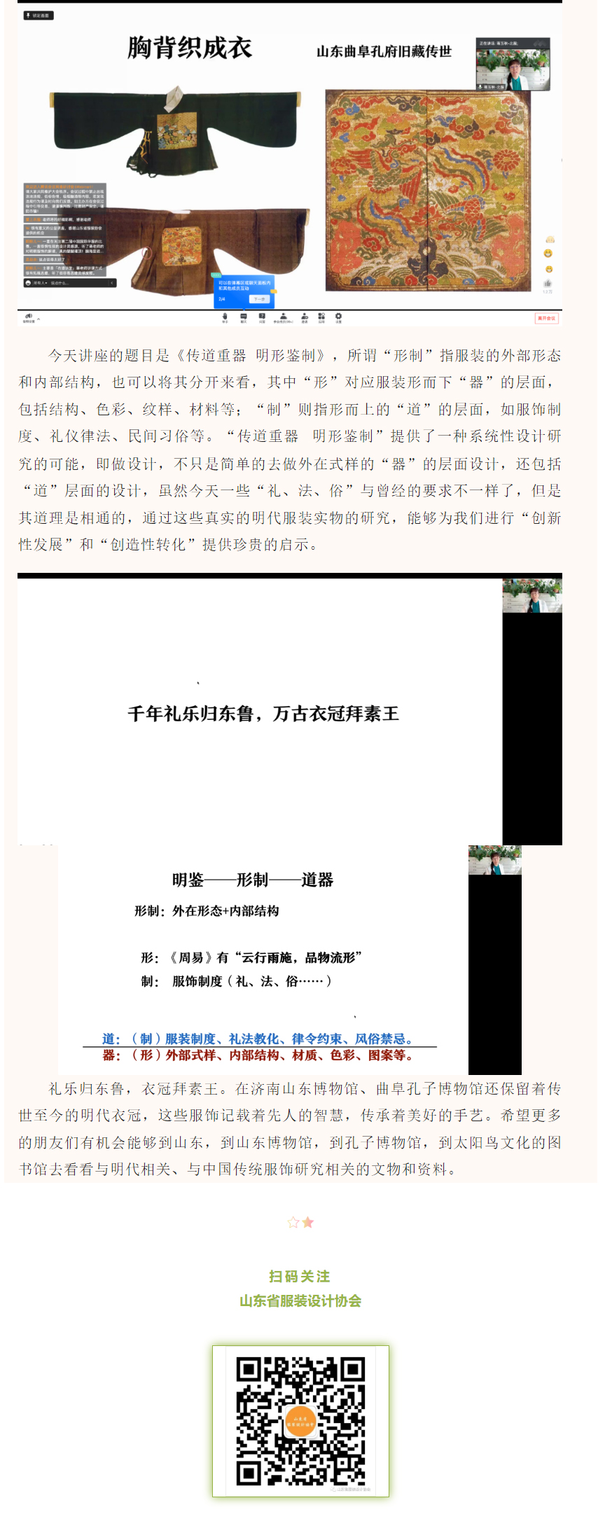 “山东省服装设计协会”公益讲座、“中国国际华服设计大赛”中国传统服饰文化公益讲堂——《衣道讲堂》系列 第二讲回顾